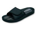 気軽に履けるオブリークサンダル。 甲部はベルクロタイプで大きく開きます。個人差のある甲の高さはもちろん、ソックスなどの着用時にもジャストフィットに対応できます。また、足指をしっかり広げて体重を支え、足への負担を軽減します。