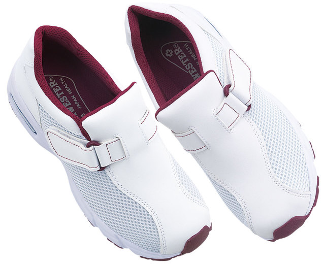 バーガンディ、エンジなどのナースウェアや介護服にぴったりのナースシューズ。