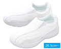●カラー/ホワイト ●素材/甲皮:合成レザー・ナイロンメッシュ、底材:EVAスポンジ ●ウイズ/3E ●かかと高さ/約35mm ●重さ/片足約190g ◎26.0cm以下はナースシューズのページにてご案内しております。