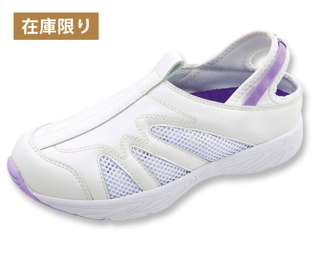 カラー/ラベンダー ●素材/甲皮:合成皮革・ナイロンメッシュ、底材:EVAスポンジ・合成ゴム ●ウイズ/3E ●かかと高さ/約25mm ●重さ/片足約160g ※こちらの商品は在庫限りで販売終了いたします ※LLサイズは完売しました